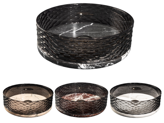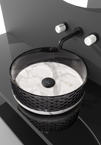 La collection Marmofusion offre une fusion exclusive de matériaux traditionnels alliée à un design sophistiqué. Les vasques façonnées en cristal taillé au diamant, sont fabriquées à la main de manière experte et assemblées sur une base ronde en marbre précieux.